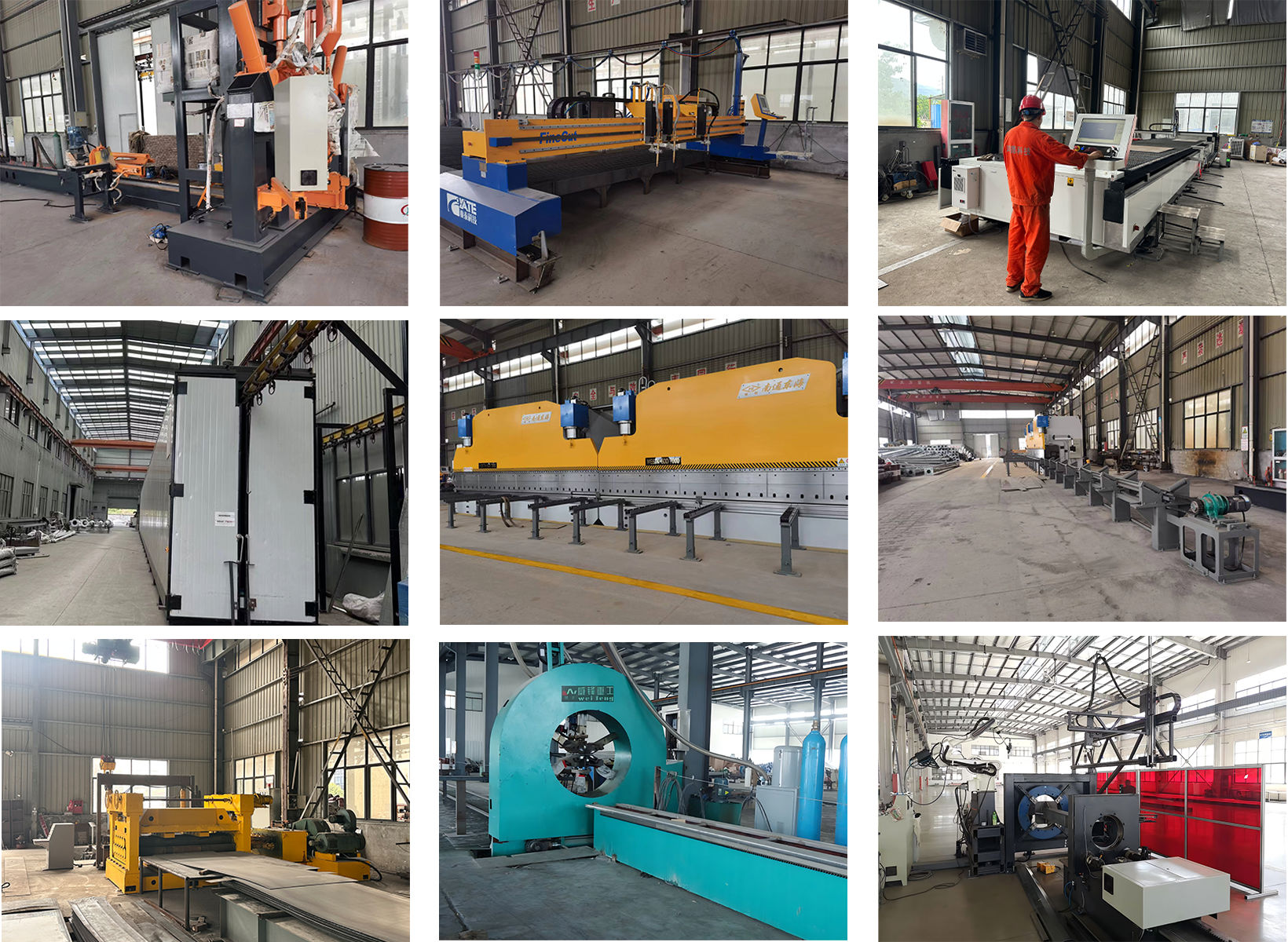 1600吨折弯机,埋弧焊机,数控火焰切割机,钢板钢管激光切割机,杆件粉末喷涂流水线,热弯管机,开平机。